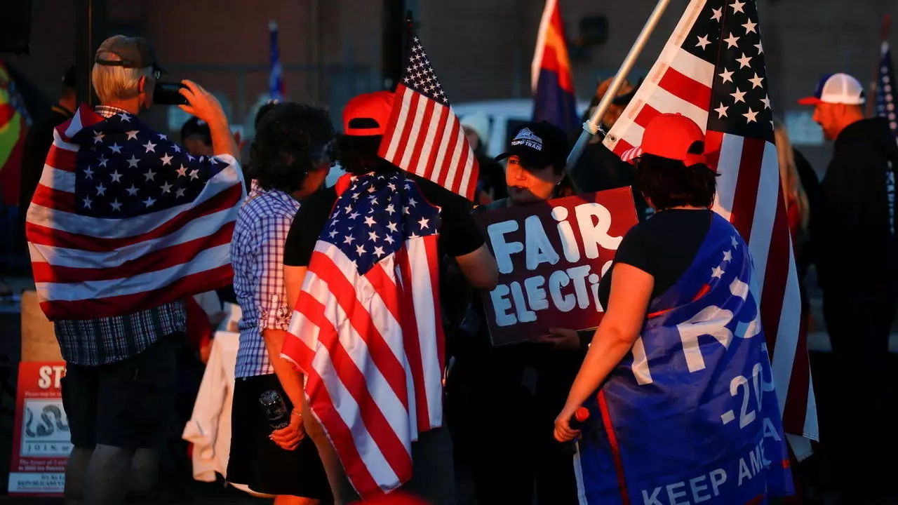 Các ủng hộ viên của tổng thống Donald Trump tập hợp phản đối tại Phoenix, Arizona, Hoa Kỳ, ngày 11/11/2020, sau khi ông Biden được tuyên bố thắng cử. REUTERS - JIM URQUHART