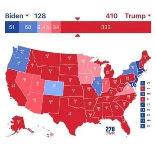 "Trump vs Biden là : 410 - 128" !