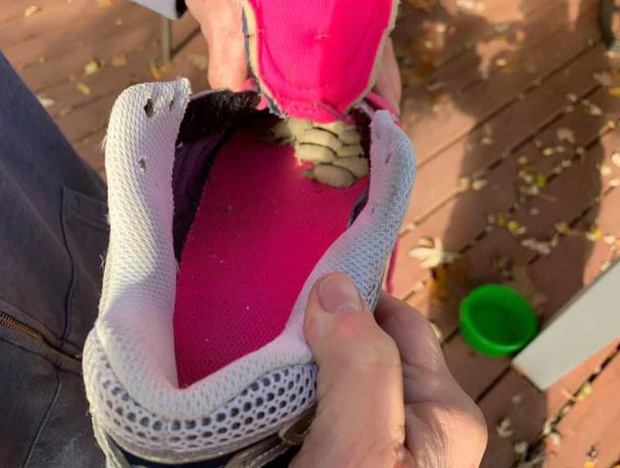 Một người phụ nữ cũng tìm được thứ tương tự trong chiếc giày thể thao của cô