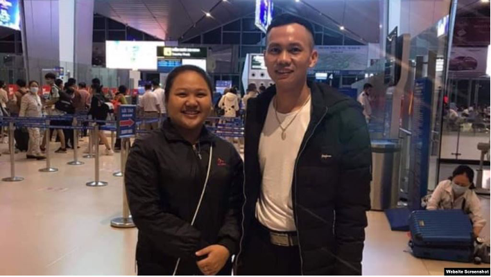 Trần Hữu Đức chụp ảnh với người thân trước khi rời Việt Nam (VOA)