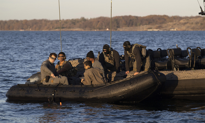 Đặc nhiệm Mỹ tham gia huấn luyện chung với quân đội Thụy Điển gần căn cứ hải quân Karlskrona, ngày 6/11. Ảnh: US Navy.