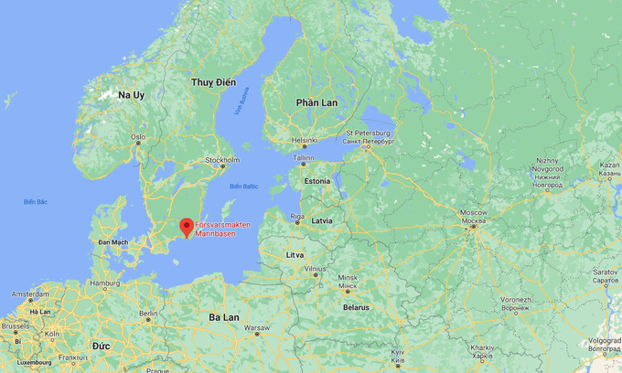 Căn cứ hải quân Karlskrona (đánh dấu đỏ) của Thụy Điển. Đồ họa: Google.