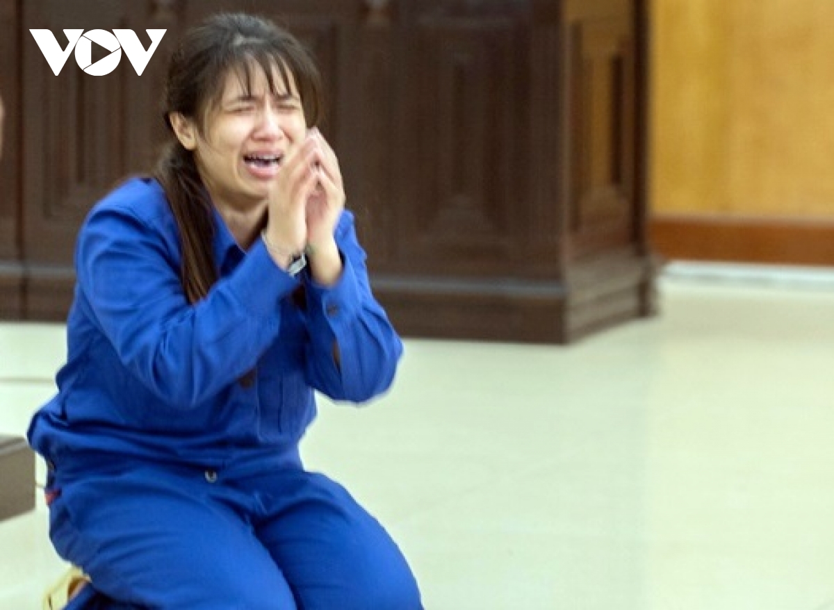 Bị cáo Lan Anh khóc lóc xin lỗi mẹ đẻ và gia đình chồng. (Ảnh: Hoàng Lam)