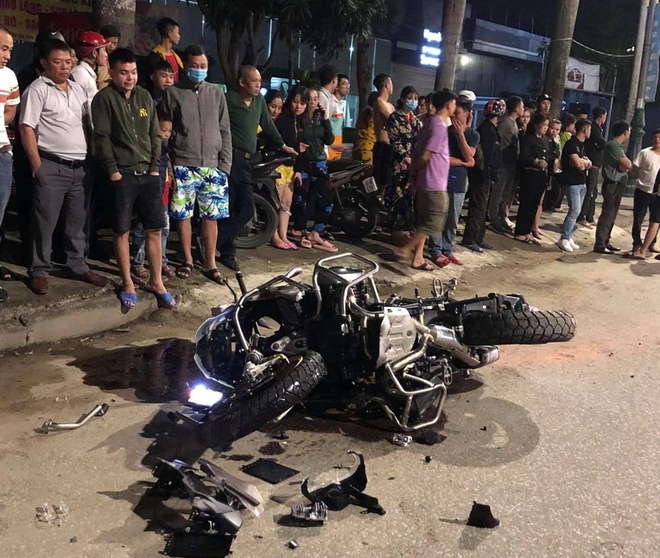 Công an thành phố Vinh cho biết môtô phân khối lớn GS1250 đang đi trên đường đã va chạm với xe máy do một phụ nữ điều khiển chở theo một người khác.