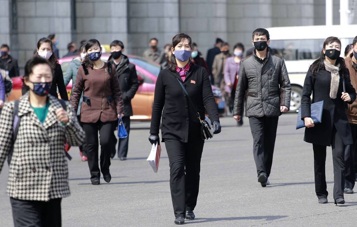 Người dân Triều Tiên đeo khẩu trang tránh Covid-19. Ảnh: TASS.