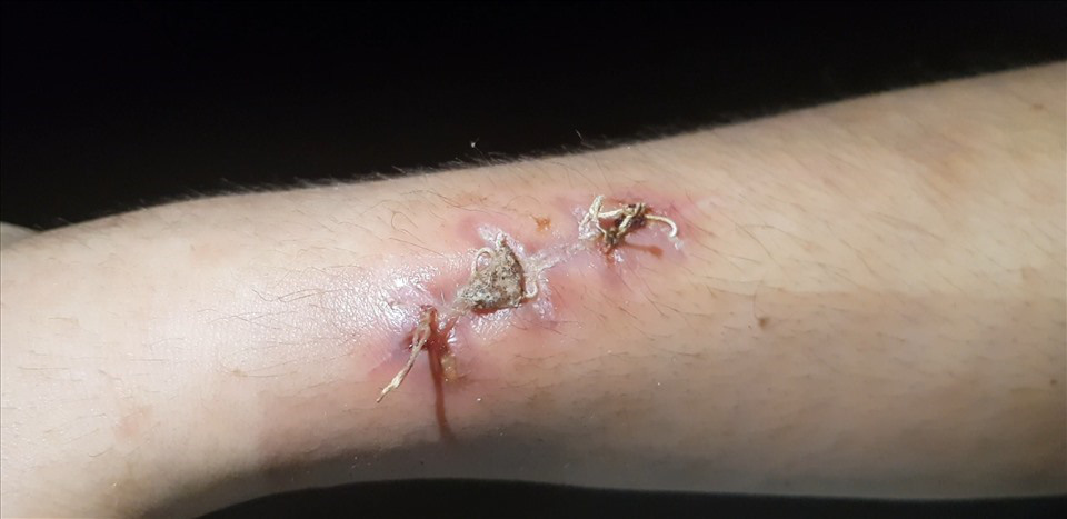 H́nh ảnh vết thương trên cơ thể của Đ. Ảnh: Lao Động.