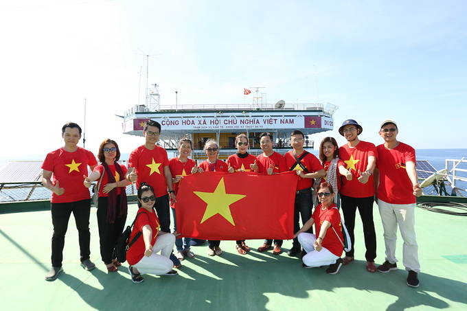 Các kiều bào thăm Nhà giàn DK1/20 thuộc tỉnh Bà Rịa - Vũng Tàu hồi tháng 4/2019. Ảnh: Anh Ngọc.
