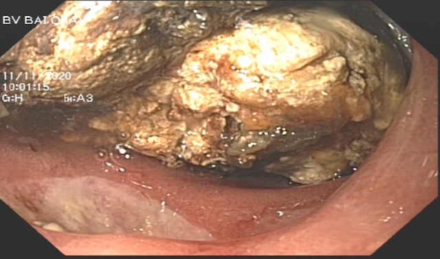 Theo lời kể của bệnh nhân, trước đó khoảng 1 tuần, người này từng ăn quả hồng và nhập viện trong tình trạng đau tức thượng vị, buồn nôn.