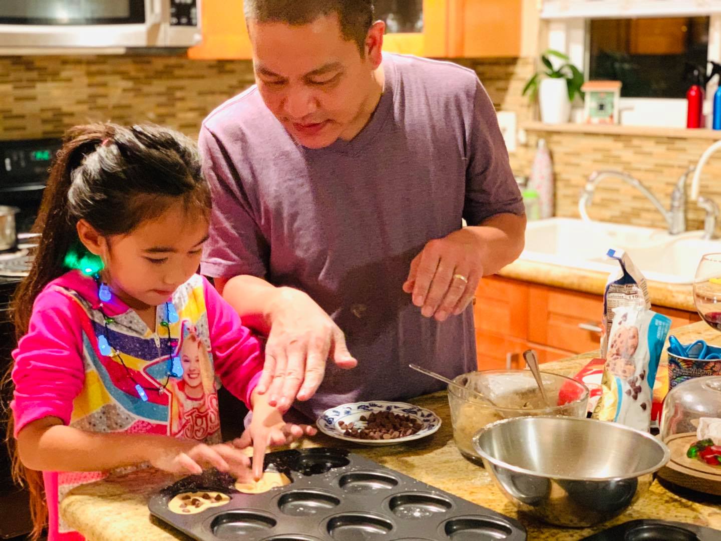 Trong ảnh, doanh nhân Andy đang cùng con gái làm bánh. Dù bận rộn nhưng chồng Kim Hiền vẫn dành thời gian cho con gái cưng. Anh được khen là ông bố tâm lý, yêu chiều ái nữ.