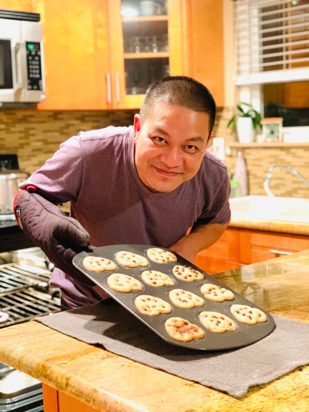 Chồng Kim Hiền hào hứng khoe thành quả làm bánh cùng con gái cưng - Ảnh: FB