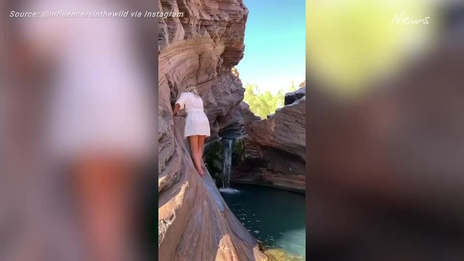 Nỗ lực để có một bức ảnh hoàn hảo ở vùng miền tây hoang dã của blogger du lịch thất bại, khi cô bị trượt chân ngã xõng xoài.