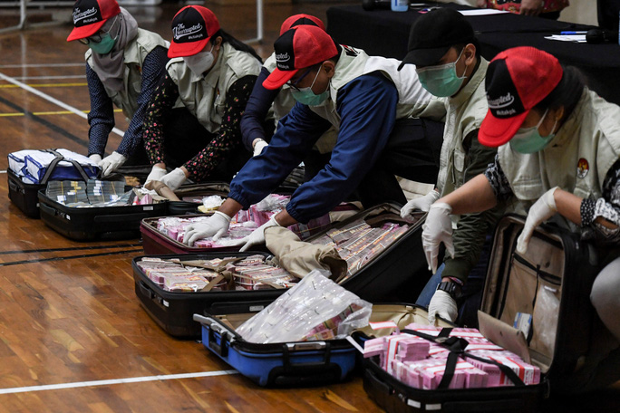 Các vali chứa tiền được xem là bằng chứng trong vụ hối lộ liên quan đến Bộ trưởng Juliari Batubara. Ảnh: Reuters