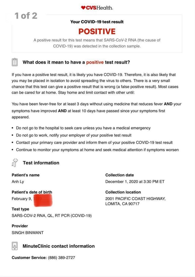 ''CDC và sở y tế cũng đưa cho mình những hướng dẫn. Họ dặn là nếu là mình không thở được thì hãy vào nhà thương, còn nếu còn thể thở được thì cứ ở nhà tịnh dưỡng, tự cách ly và uống Tylenol. Vì vào bệnh viện thì cũng khó có chỗ nằm vì phải dành cho những người bị nặng.''