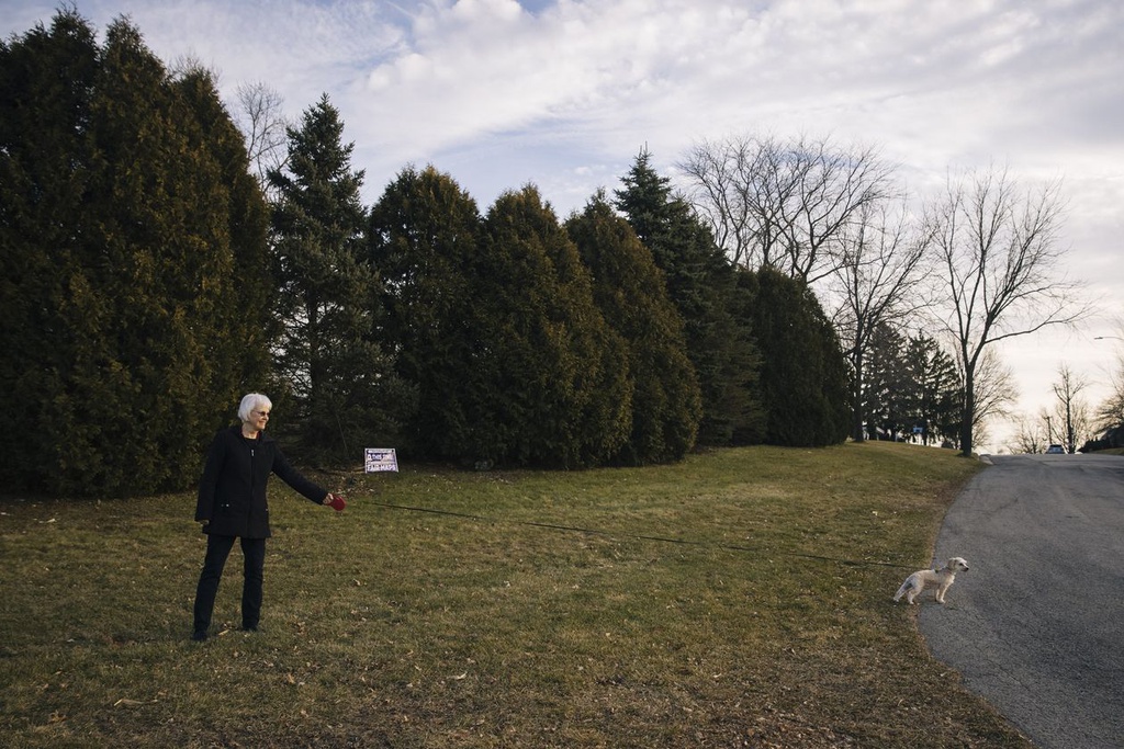 Bà Mary Arnold dẫn chó đi dạo quanh nhà ở Wisconsin. Ảnh: Wall Street Journal.