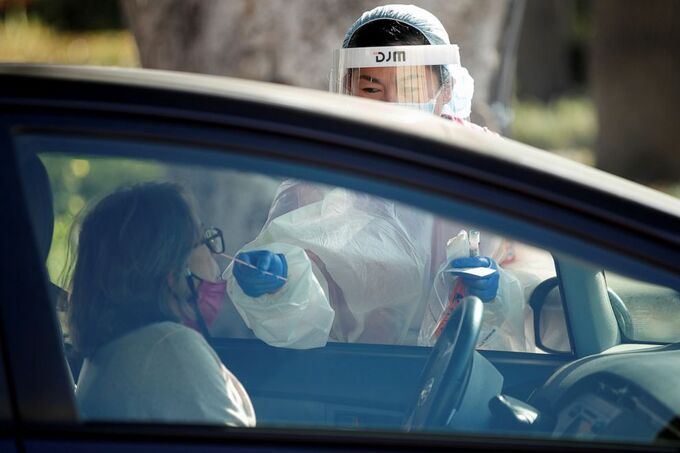 Nhân viên y tế làm xét nghiệm nCoV tại California ngày 10/12. Ảnh: Reuters.