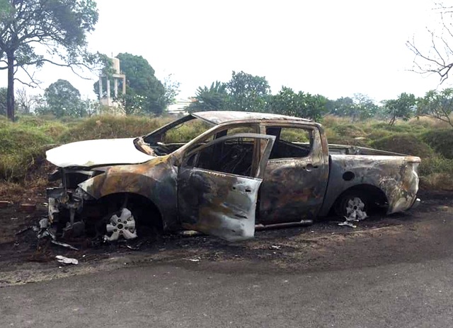 Chiếc xe ô tô bán tải bị đốt cháy trơ khung.