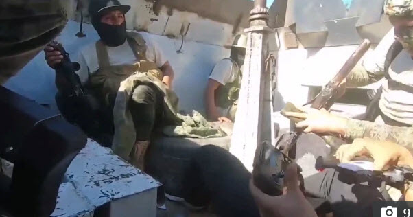 Thành viên nhóm dân quân ngồi bên trong xe chống đạn tự chế.