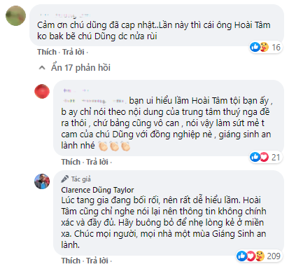 Ở phần bình luận, khi có khán giả đứng về phía Dũng Taylor sau vụ việc trước đó có bình luận nhắc chuyện cũ rằng: "Cảm ơn chú Dũng đã cập nhật. Lần này thì ông Hoài Tâm không bắt bẽ chú Dũng được nữa rồi!", thì ông xã của ca sĩ Thu Phương cũng đã trả lời với ý muốn hòa giải rằng: "Lúc tang gia đang bối rối, nên rất dễ hiểu lầm. Hoài Tâm cũng chỉ nghe nói lại nên thông tin không chính xác và đầy đủ. Hãy buông bỏ để nhẹ lòng kẻ ở miền xa. Chúc mọi người, mọi nhà một mùa Giáng Sinh an lành!".