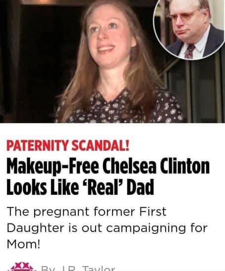Con gái tên Chelsea Clinton là tác phẩm của cuộc ngoại tình với luật sư Wesber Hubell, chuyên lui tới với gia đình bà rồi hốt luôn đẻ ra con bánh bèo nhỏ này.