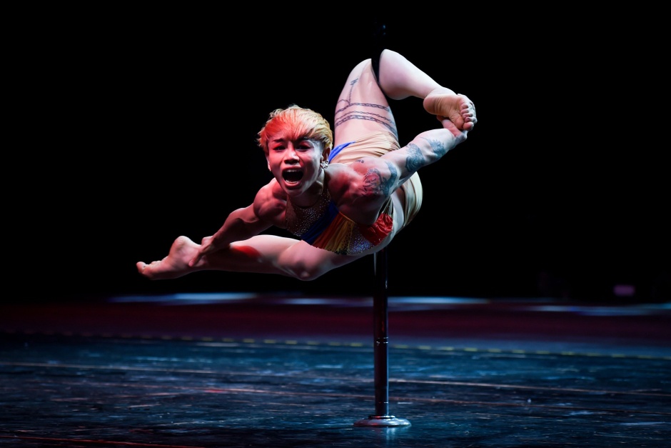 Tóc xanh, môi đỏ, mặc quần ôm siêu ngắn. Ke Hong (27 tuổi) đi qua đám đông và bước lên sân khấu. Anh dùng hai tay siết chặt ống thép, nhẹ nhàng di chuyển lên không trung, nhắm mắt, xoay người, đôi giày cao gót màu bạc lóe lên dưới ánh đèn theo hướng xoay người của anh.