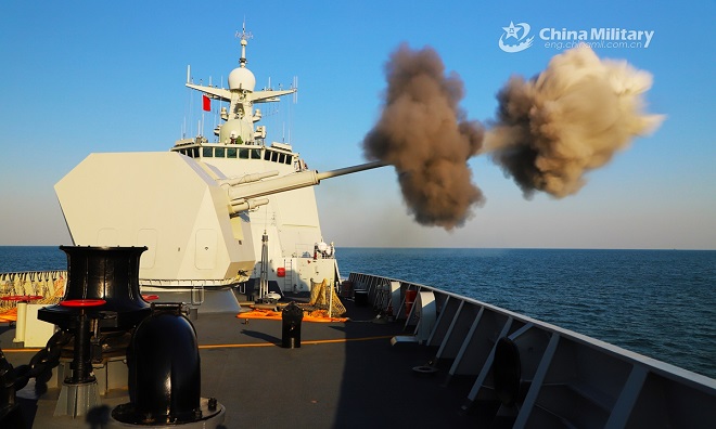 Tàu khu trục tên lửa Qiqihar của Trung Quốc khai hỏa pháo chính trong một cuộc tập trận