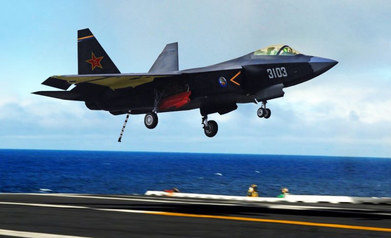 Tiêm kích tàng hình trang bị trên tàu sân bay của Trung Quốc cũng sẽ lần đầu tiên bay thử nghiệm vào năm 2021. Đây nhiều khả năng là mẫu tiêm kích hạm FC-31, với tính năng chiến đấu cạnh tranh mẫu tiêm kích hạm F-35B của Mỹ.