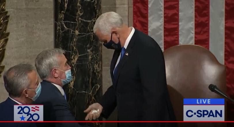 Đây là một trò đùa trên toàn thế giới: Chủ tịch Thượng viện Pence đã bắt đầu nhận hối lộ. Với một cái bắt tay, một món đồ có giá trị đã được trao cho Pence. Người ta ước tính rằng đây là một mã thông báo giá trị được trao cho Pence thay mặt cho Chủ tịch Tập. Hoặc một bức thư gấp lại, khen ngợi Pence vì thành tích xuất sắc của anh ấy ngày hôm nay và lời hứa của anh ấy cho tương lai. Pence thận trọng bỏ vào túi của mình!