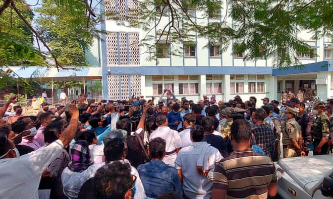 Đám đông tập trung bên ngoài bệnh viện quận Bhandara, bang Maharashtra, Ấn Độ, nơi 10 trẻ sơ sinh thiệt mạng trong vụ hỏa hoạn hôm 9/1. Ảnh: AFP.