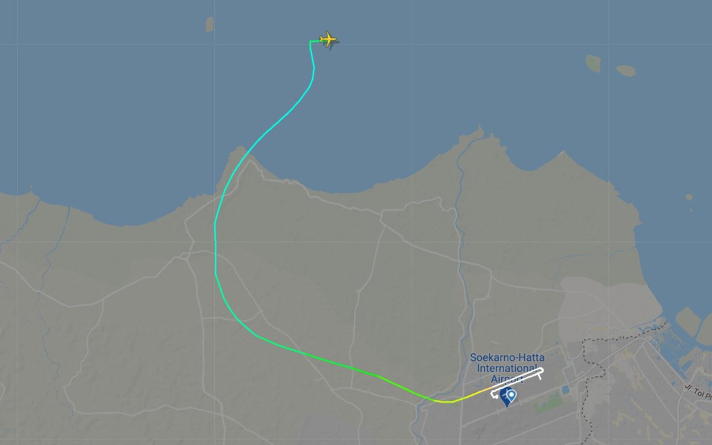 Chiều ngày 9/1, chính quyền Indonesia xác nhận chuyến bay số hiệu SJ182 của hãng Sriwijaya mất liên lạc chỉ bốn phút sau khi nó cất cánh rời sân bay ở Jakarta, Indonesia. Nó dự kiến đáp ở Pontianak, Indonesia. Ảnh: FlightRadar24.