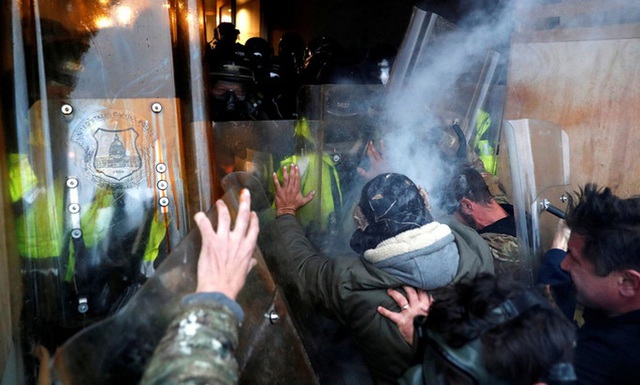 Cảnh sát chặn người biểu tình định xâm nhập Đồi Capitol hôm 6-1. Ảnh: Reuters