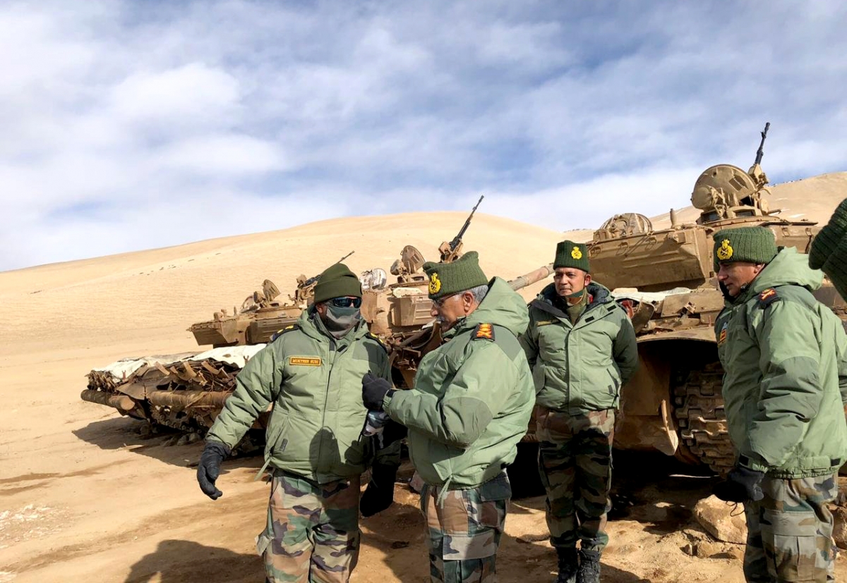 Tư lệnh Lục quân Ấn Độ MM Naravane đi đánh giá giá tình hình đường LAC tại Leh cuối năm 2020. Ảnh ANI.