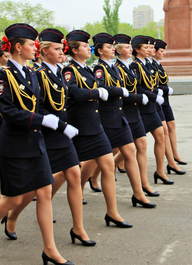 Sau thời kỳ tan rã của nhà nước Xô Viết và chuẩn bị bước vào con đường dân chủ hóa, nước Nga đã quyết định tăng cường sự hiện diện của phái đẹp trong các cơ quan nhà nước lẫn lực lượng vũ trang. Thể hiện sự trân trọng những cống hiến của người phụ nữ Nga trong chiến tranh và cho thấy sự bình đẳng giới của đất nước này.