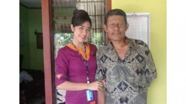 Nữ tiếp viên hàng không Mia chụp ảnh cùng với cha mình