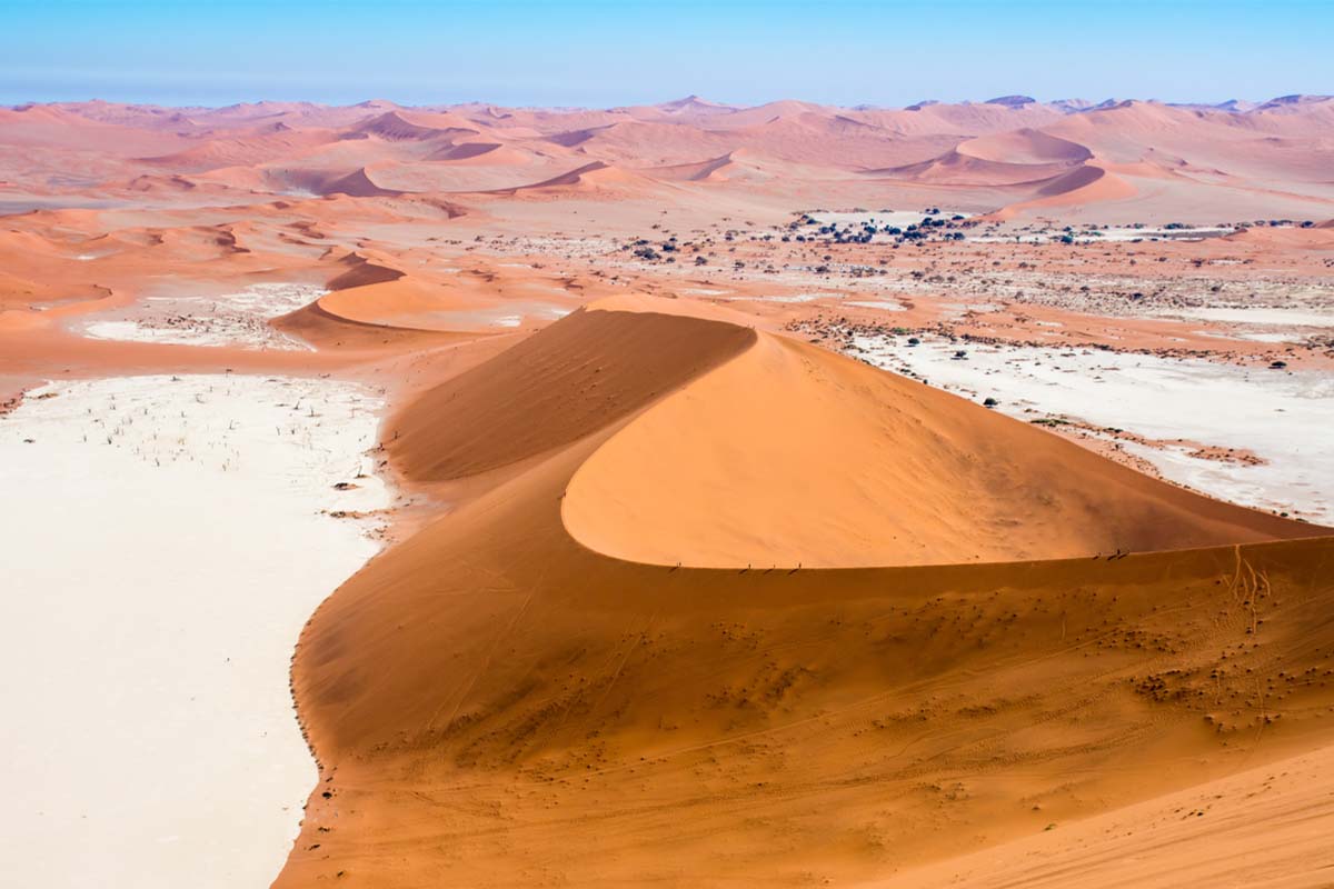 Sossusvlei là một trong những nơi kỳ lạ nhất trên thế giới, với những cây keo chết chóc kỳ quái tương phản với những đụn cát màu sắc nóng bỏng luôn thay đổi dòng chảy theo mùa.