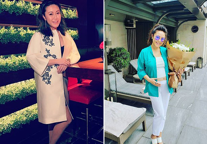 La Lực Lực khi mang thai (trái) và sau khi hạ sinh con gái. Ảnh: Instagram.