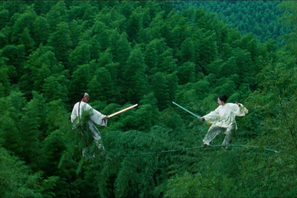 Một cảnh trong số đó, vốn đã vào hàng kinh điển, là màn đấu kiếm mang màu sắc kỳ ảo giữa Lý Mộ Bạch (Châu Nhuận Phát) và Ngọc Kiều Long (Chương Tử Di) trên đỉnh rặng tre.