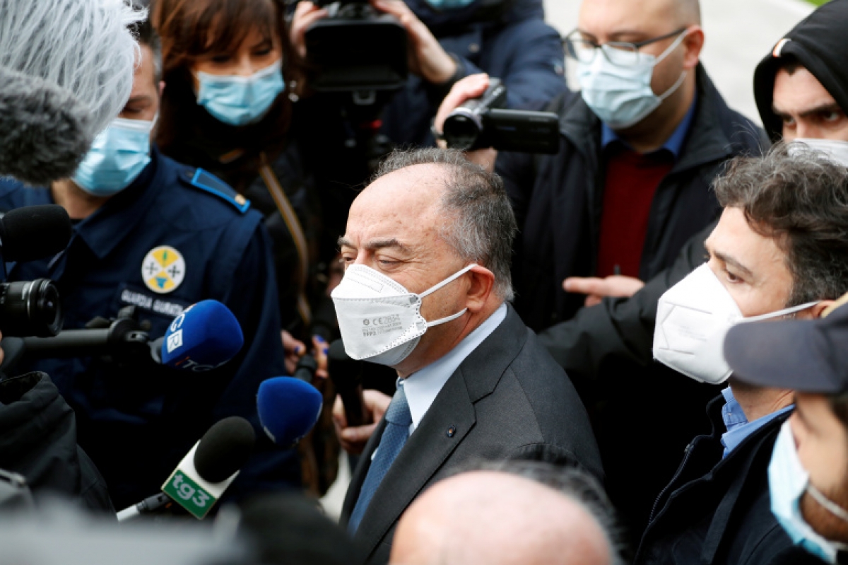 Công tố viên Nicola Gratteri phát biểu trước truyền thông khi tới phiên tòa xét xử hàng trăm đối tượng liên quan tới mafia và tội phạm tham nhũng. Ảnh: Reuters