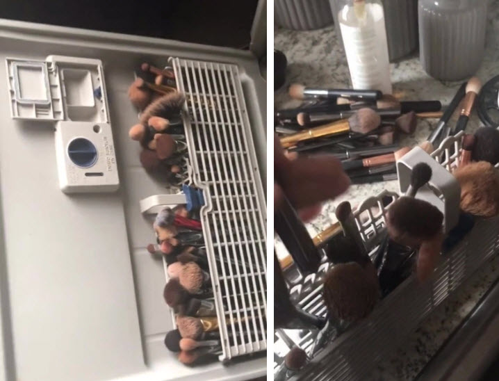 Old  Default Chồng bỏ đống cọ trang điểm của vợ vào máy rửa bát làm sạch nhưng cái kết