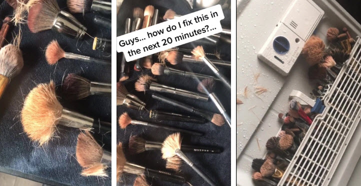 Ở nhà, cô nàng có gần cả trăm chiếc cọ makeup thuộc đủ thể loại và kích thước. Thấy vợ liên tục kêu ca phàn nàn về việc phải mất thời gian công sức để làm sạch những dụng cụ trang điểm này, cho nên ông chồng giúp vợ bỏ đống cọ trang điểm của vợ vào máy rửa bát để làm sạch, vì định tạo bất ngờ nhưng cái kết khiến dân tình ôm bụng cười bò. Đúng là ngu dốt cộng nhiệt tình bằng phá hoại, chẳng bao giờ lệch đi đâu được!