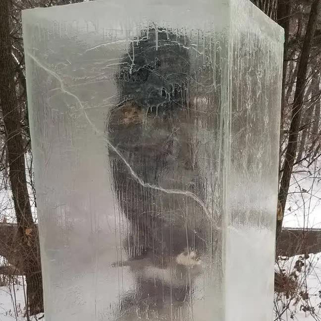 Được biết, bức tượng người đàn ông thượng cổ bị mắc kẹt trong khối băng ở công viên Theodore Wirth, Minneapolis, đang gây hoang mang dư luận nước Mỹ chính là tác phẩm của chàng nghệ sĩ Zach Schumack. Người đàn ông này cho biết mục đích làm ra tác phẩm nghệ thuật này của anh là để kêu gọi mọi người hãy bỏ điện thoại xuống và ra ngoài trải nghiệm cuộc sống này nhiều hơn.