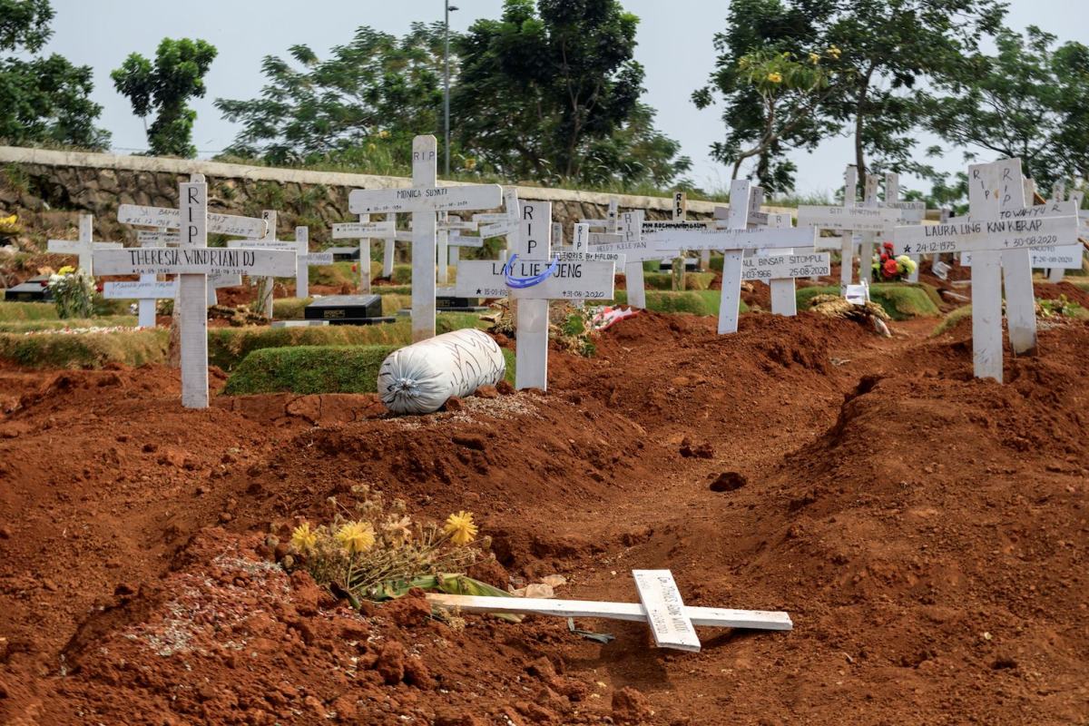 Một nghĩa trang chôn cất nạn nhân COVID-19 ở Jakarta. Ảnh: AFP
