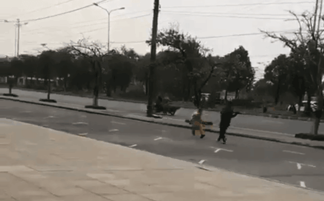Theo đó, một người đàn ông đội mũ bảo hiểm, cầm côn nhị khúc dọa tấn công lực lượng chức năng. Khi chiến sĩ CSGT trượt ngã, đối tượng "được đà" tấn công liên tiếp.
