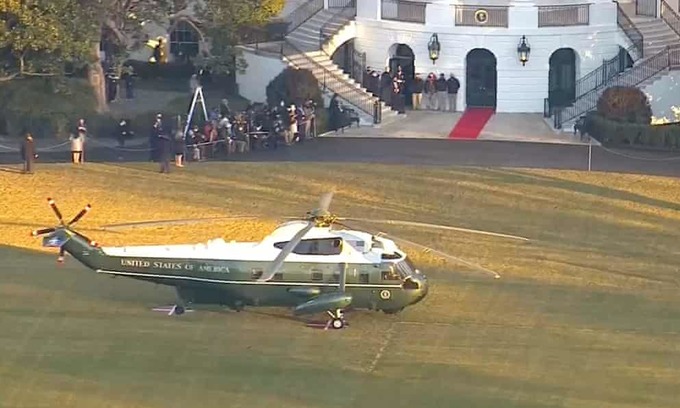 Trực thăng Marine One tại bãi cỏ Nhà Trắng. Ảnh: Guardian.