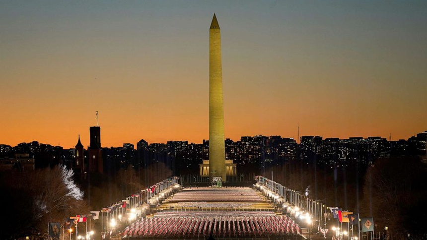 200 nghìn lá cờ Mỹ được dựng lên giữa Điện Capitol và Đài tưởng niệm Washington để thay cho hàng trăm nghìn người không thể đến dự lễ nhậm chức của ông Biden. Ảnh: AP.