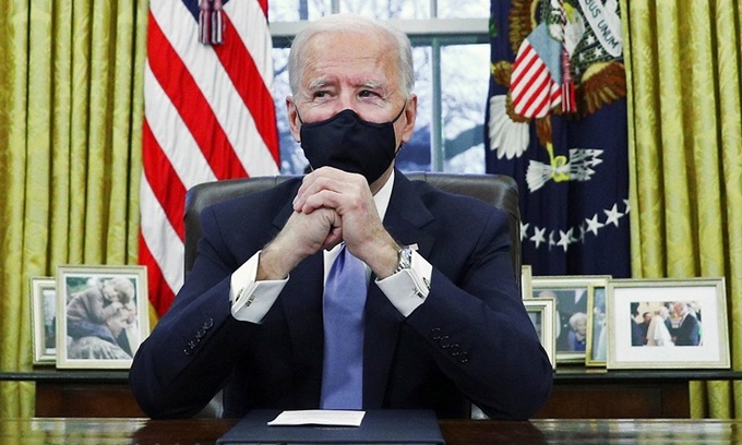 Tổng thống Mỹ Joe Biden tại Phòng Bầu dục, Nhà Trắng, ngày 20/1. Ảnh: Reuters.