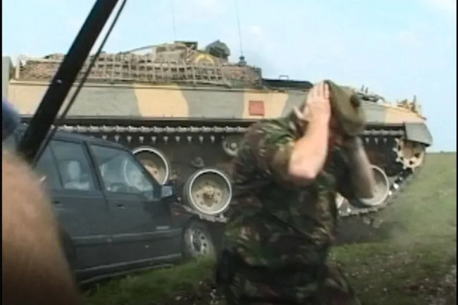 Dường như các thành viên trong đoàn phim có mặt trong cuộc tập trận của quân đội Anh đã quên mất điều này. Họ theo dõi chiếc Challenger 2 hạng nặng do xe chiến đấu bộ binh MCV-80 Warrior hộ tống tấn công một kẻ thù mô phỏng.