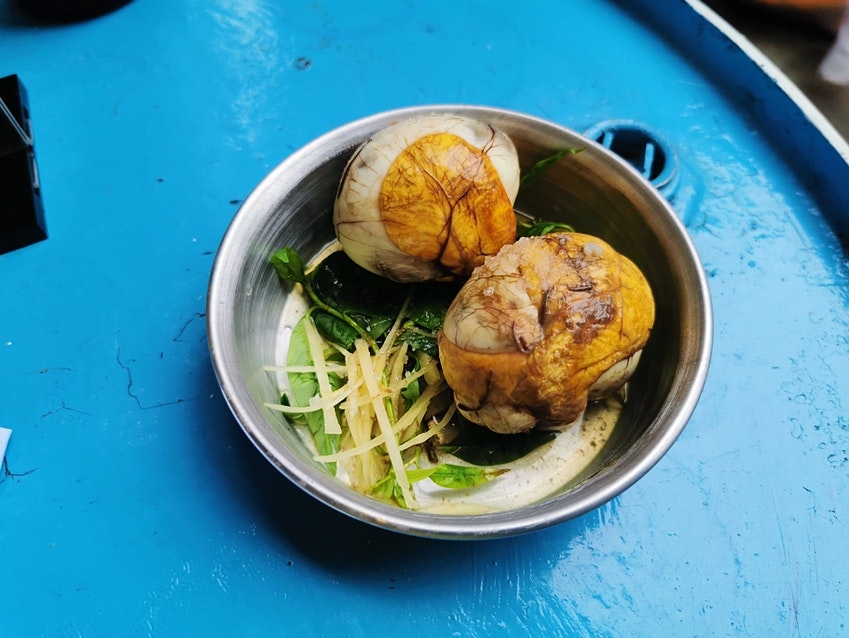 Trứng vịt lộn là loại trứng có phôi đã phát triển thành hình nhưng chưa thực sự ra hình dáng con vịt hoàn toàn. Đây thực tế là một món ăn có giá trị dinh dưỡng cao hơn trứng gà, vịt thường và là món ăn sáng phổ biến. Trứng vịt lộn luộc sẽ ăn kèm với rau răm, chút muối chanh và ớt, gừng. Nếu du khách quá sợ loại trứng to này thì có thể thử sang trứng cút lộn nhỏ hơn, dễ ăn hơn khi chế biến thành món cút lộn xào me, xào dừa...
