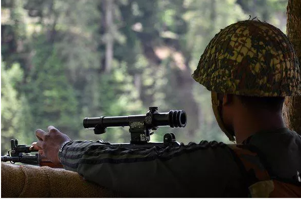 Một người lính Ấn Độ bảo vệ một điểm trên đường quốc lộ Srinagar-Leh (Ảnh: Faisal Khan / NurPhoto / Getty)