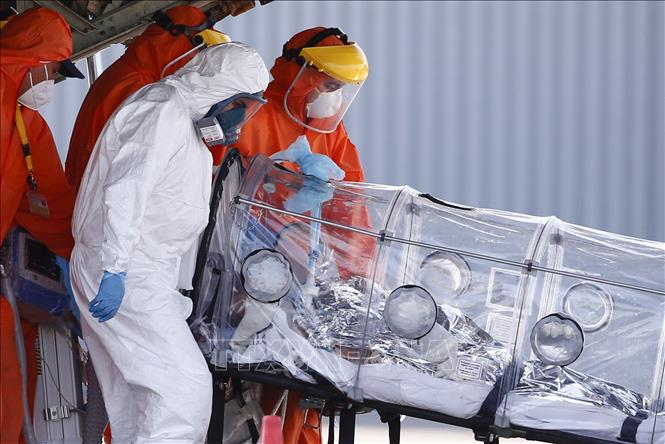 Nhân viên y tế chuyển bệnh nhân COVID-19 bằng máy bay tại sân bay quân sự ở Santiago, Chile ngày 25/1. Ảnh: AFP/TTXVN