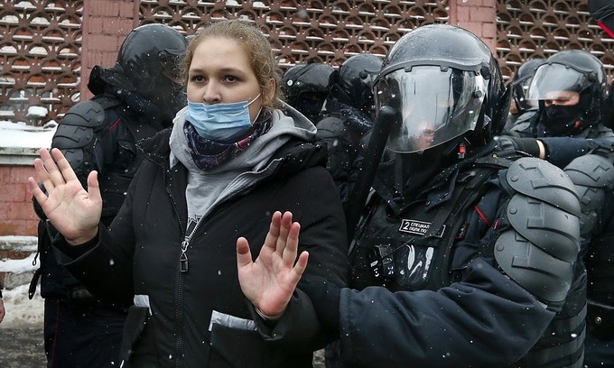 Những người này bị bắt khi tham gia các cuộc biểu tình khắp nước Nga với quy mô hàng chục nghìn người cuối tuần qua, yêu cầu giới chức thả Navalny, theo nhóm quan sát OVD-Info.